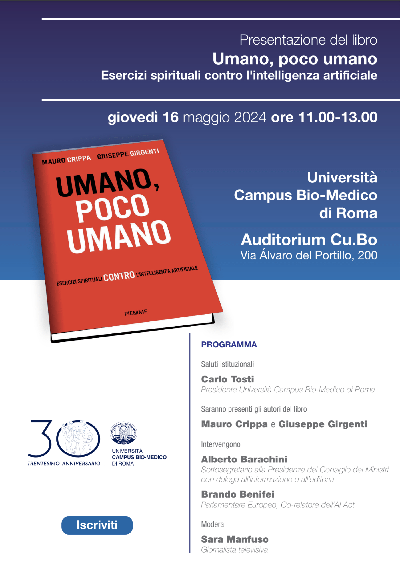 Presentazione del libro: Umano, poco umano. Esercizi spirituali contro l’intelligenza artificiale Per maggiori informazioni.Per partecipare. Condividi: Condividi su Facebook (Si apre in una nuova finestra) Facebook Stampa (Si apre in una nuova finestra) Stampa Share on LinkedIn (Si apre in una nuova finestra) LinkedIn Condividi su X (Si apre in una nuova finestra) X Mi piace Caricamento... Correlati Lascia un commento Cancella risposta Δ