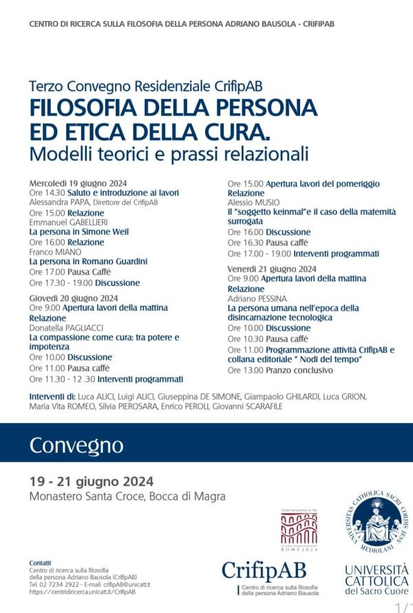 Submission deadline: October 31, 2024Conference date(s): March 6, 2025 - March 8, 2025Go to the Conference's pageConference Venue: Pontificia Università della Santa Croce, Rome, Italy - Interdisciplinary Forum on Anthropology Download the Call for PapersDownload